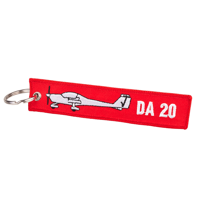Keyring with REMOVE BEFORE FLIGHT inscription on the one and DA 20 logo on the other side.