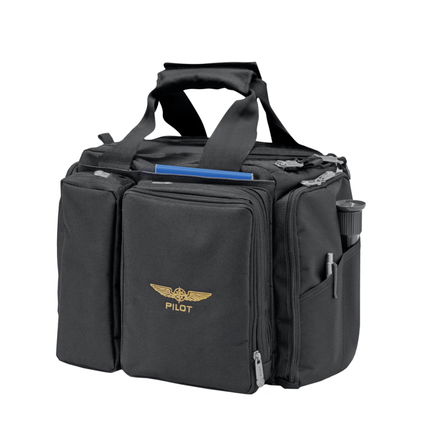 On the front, an outside pocket with a two-way-zipper allows quick access and there is another large compartment for cards, approach charts, flight plan etc.